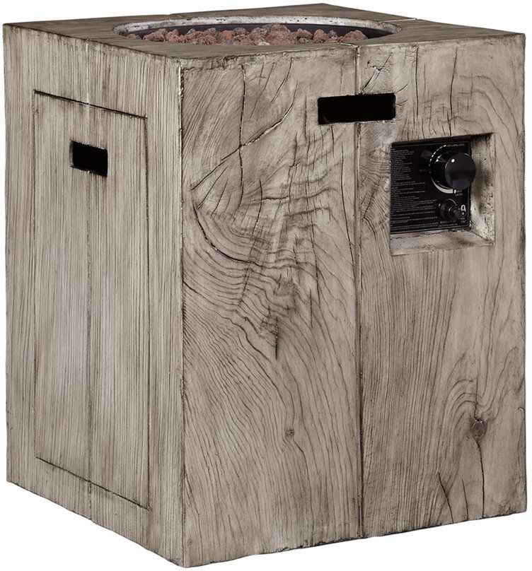 Enjoy the rustic warmth and enduring performance of the Peachstone outdoor fire table. The square compact design has all the appearances of richly grained wood, but is actually a carefree all-weather composite you'll enjoy gathering around for years. Included burner cover transforms the fire table into a convenient end table.Read More
