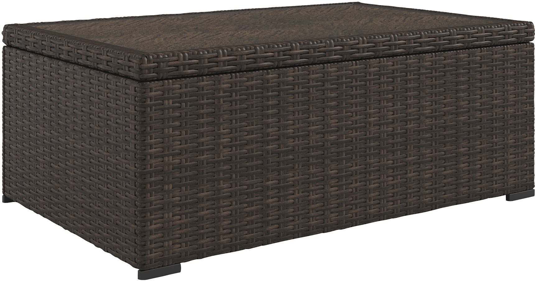 The Alta Grande cocktail table is just what you need to get your outdoor party started. All-weather resin wicker lends an elegant air, while the rust-proof aluminum frame ensures durability. Appealing textured fiberglass-resin table top provides visual interest as well as plenty of room for snacks and beverages.