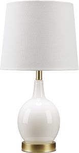 This glass table lamp is the perfect combination of form and function, providing lighting and chic style to any interior. The curvaceous white lamp is crafted for modern flair and topped with a fabric shade.Read More