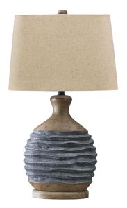 Bring extra texture into your home with the ribbed detailing of the Medlin collection from Signature Design by Ashley®. The combination of paper composite and wood in a two-tone finish of gray and beige enhances its artsy feel and structural design.