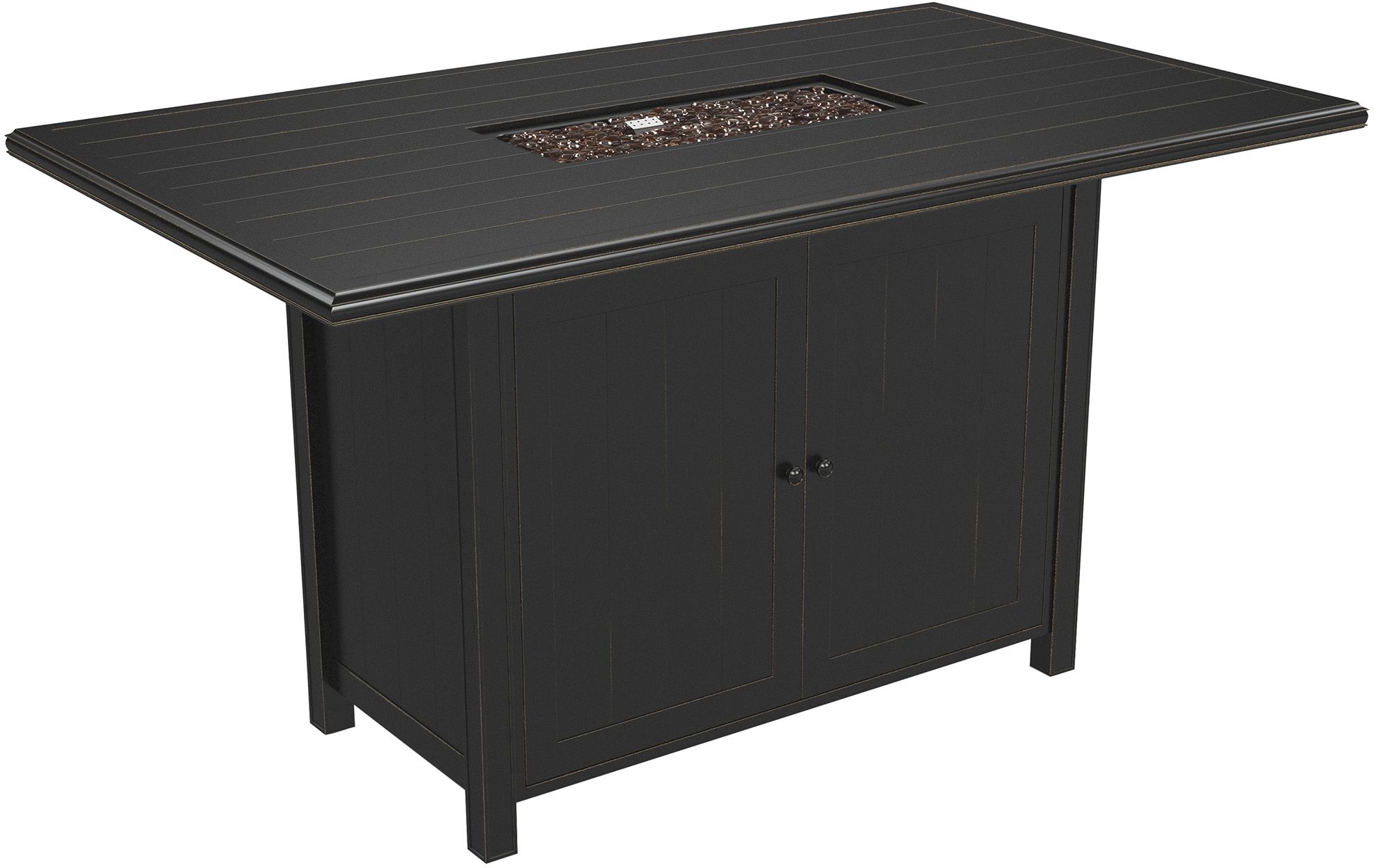 Cool style, made for warm memories. That’s the beauty of the Perrymount fire pit bar table. Finished in a rich, dark brown with distressed look accents, the rust-proof aluminum sports plank effect styling on the sides and tabletop for character and refinement. Pair of doors below provide easy access to additional storage and your propane tank. When you’re not taking in the beauty of the flickering flame over glass beads, use the burner cover for that much more bar table space.Read More