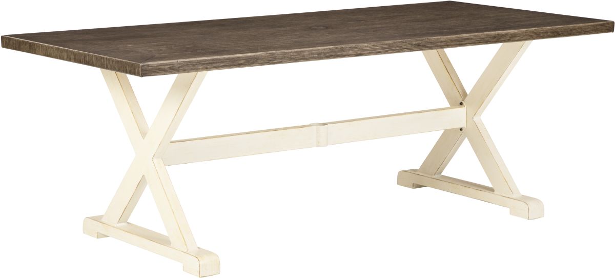 Bring the relaxed aesthetic of modern farmhouse design outdoors with this dining table. Finished with a creamy white base and a wood-look top, its rust-proof aluminum frame ensures carefree living with an easy-breezy appeal. Comfy, casual and absolutely on trend, it's perfect for use inside or out.