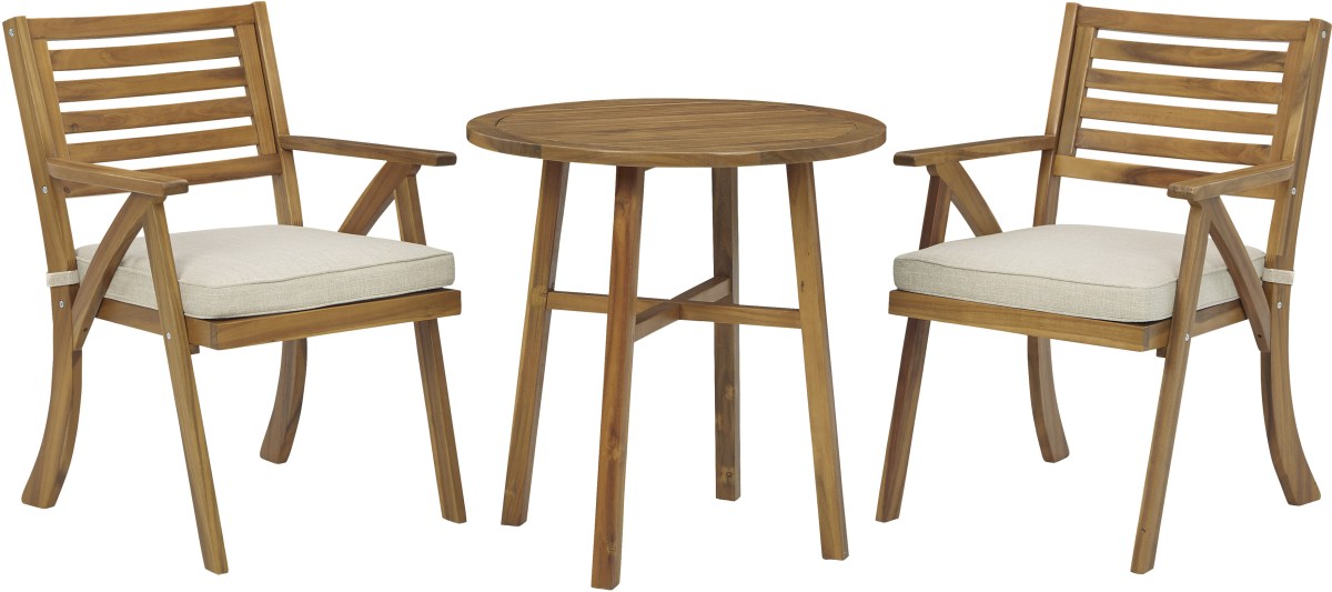 Turn an outdoor space into your own private oasis with this 3-piece bistro set. The essence of easy-breezy outdoor living, this brilliantly styled bistro set is quality crafted of acacia wood in a natural teak tone for an exotic element. Delightfully low-maintenance seat cushions wrapped in Nuvella® fabric perfect the aesthetic.Read More