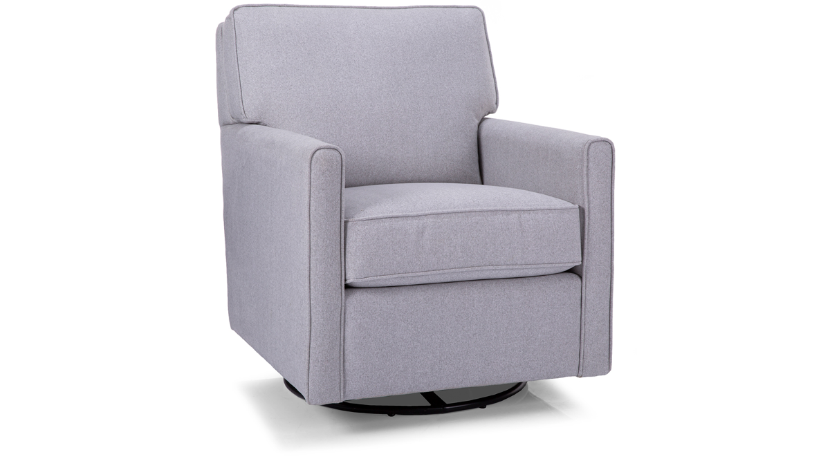 Swivel Glider Chair: 29" L x 37" D x 36" H Additional Dimensions Arm Height: 25" Seat Depth: 21" Seat Height: 19" Features Spring: Sinuous Spring Construction Seat Foam: 1.9 lb. Standard Foam, Option of Firm. Back & Seat Cushion: Semi-attached back, box seat with self-welt Special Features: Swivel with auto return and gliding ring baseRead More